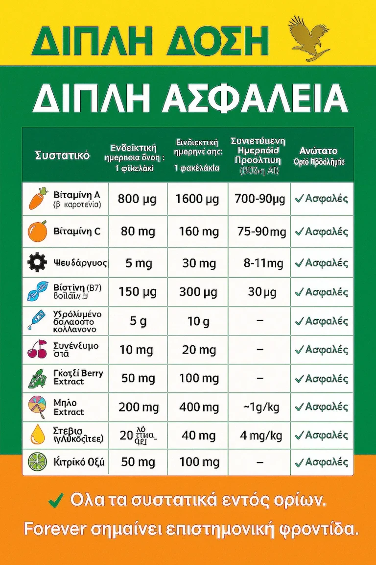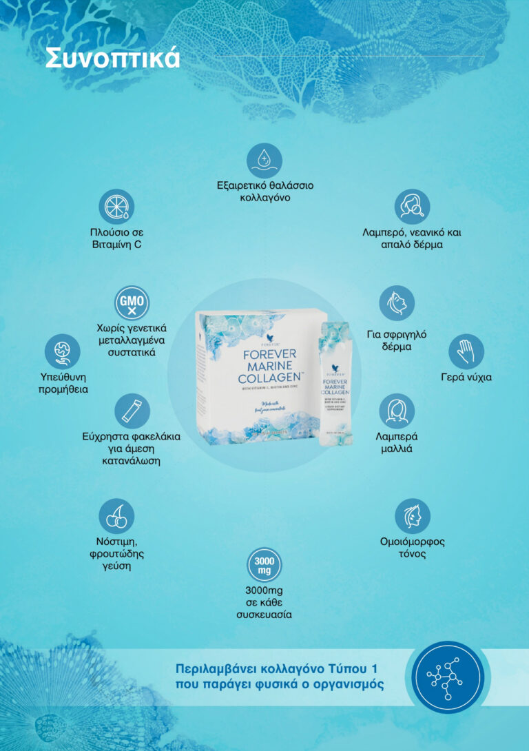 Το Forever Marine Collagen™ είναι ένα **πιστοποιημένο, ασφαλές και υψηλής ποιότητας** συμπλήρωμα διατροφής, με **ρυθμιστική κάλυψη από τον ΕΟΦ**, **διεθνείς προδιαγραφές παραγωγής**, και **διατροφική καθαρότητα** που το καθιστούν κατάλληλο για καθημερινή χρήση και ευρεία καταναλωτική βάση.